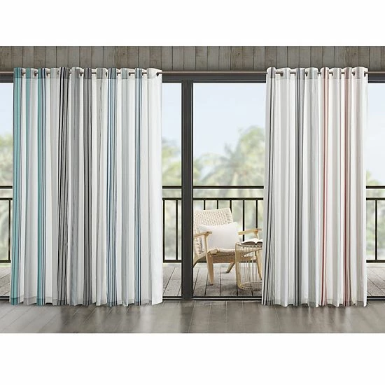 Get ready for the beautiful summer weather with this Madison Park stripe fretwork outdoor curtain. Simply hang to stylishly separate your space, enhance privacy, or filter the right amount of light for comfort.