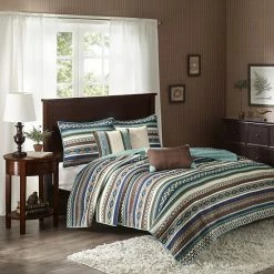 Give your room a casual update with this cozy Madison Park 6-piece Harley Quilted coverlet set. In blue.