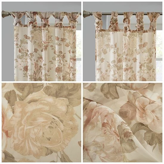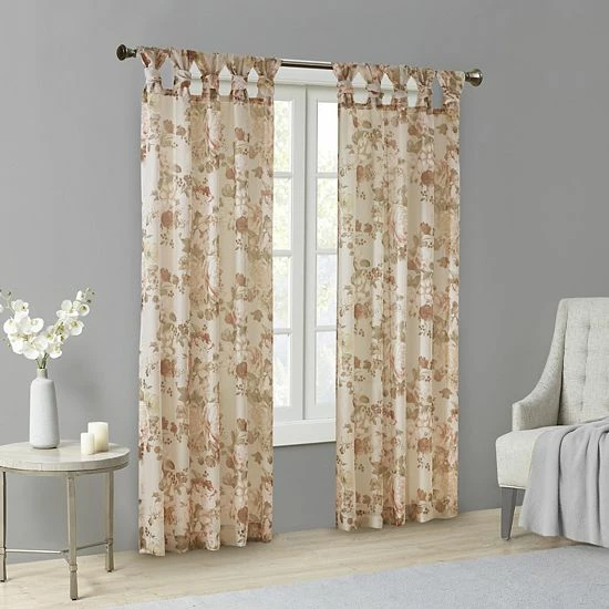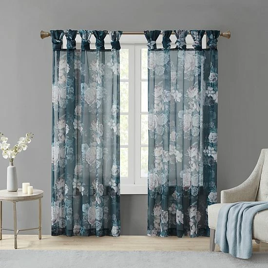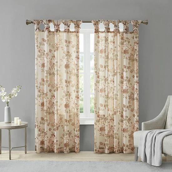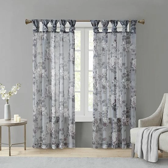 The Madison Park Abelia Printed Floral Twist Tab Top Voile Sheer brings a soft and romantic touch to your home decor. This voile sheer curtain panel features a beautiful printed floral and the lightweight fabric adds a delicate and airy touch.