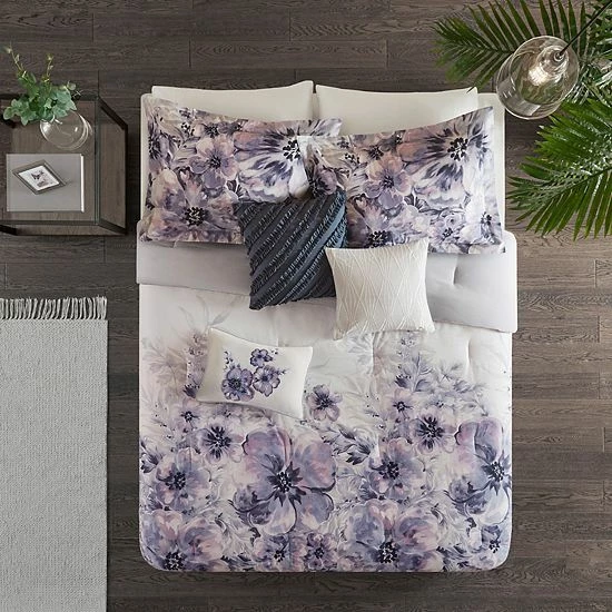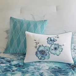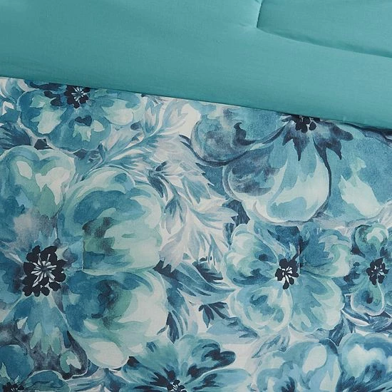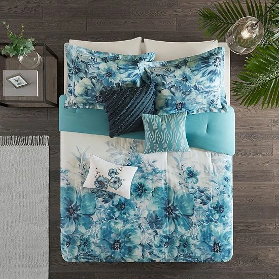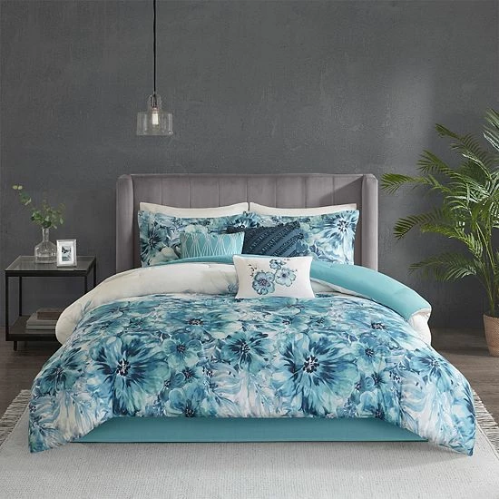 This Madison Park Adella comforter set introduces a beautiful splash of color and style to your space.