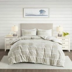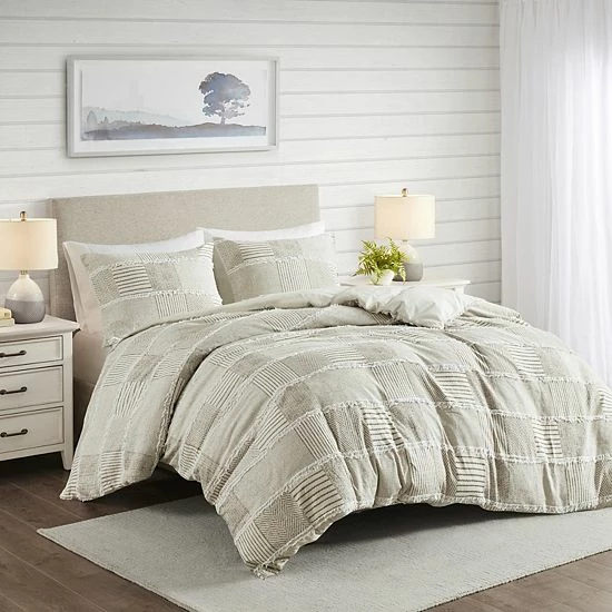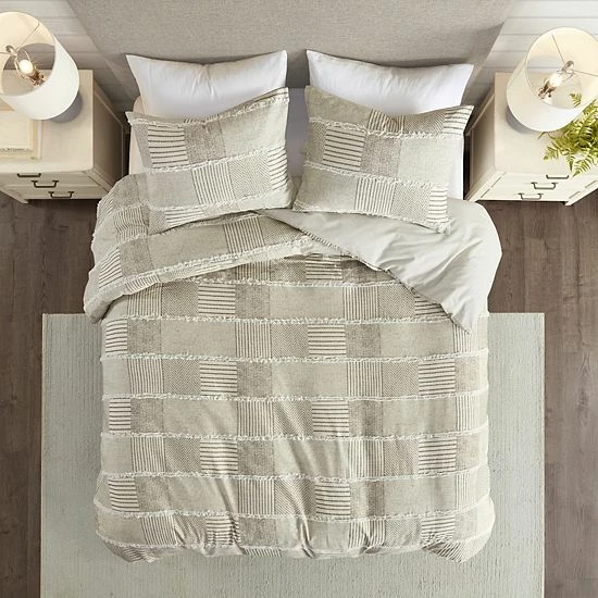 - Farmhouse style cotton clipped comforter set with geometric pattern