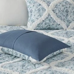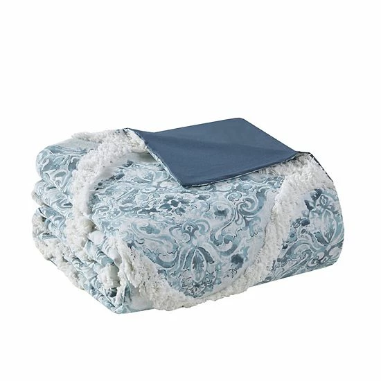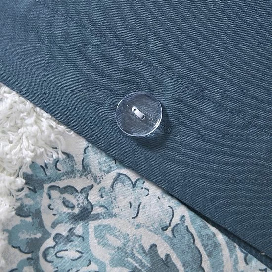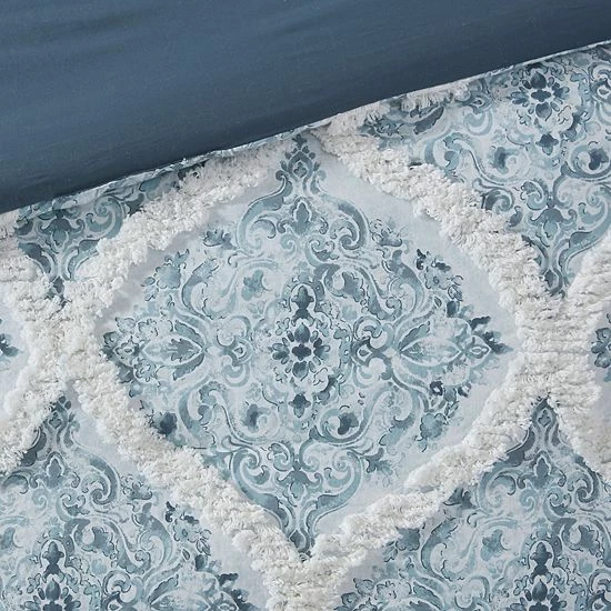 - Medallion design all over bed in a soft teal hue with chenille trim detail