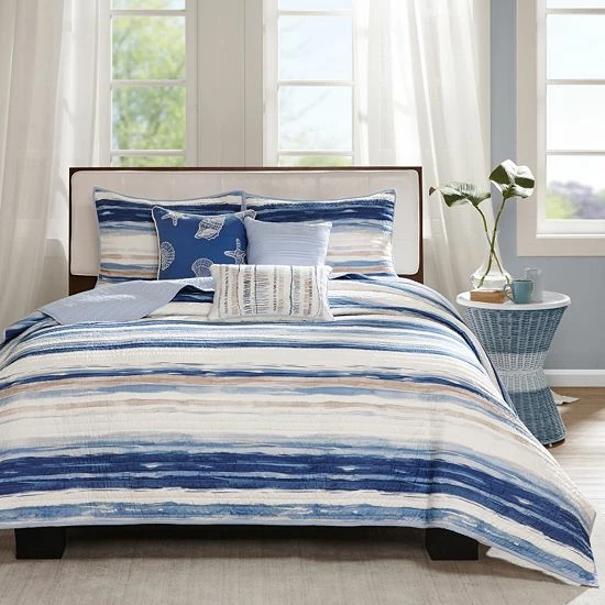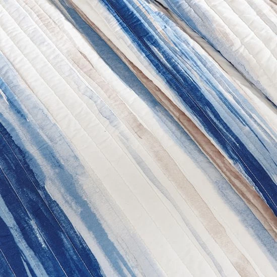 - Coastal style quilted coverlet set in water color stripes