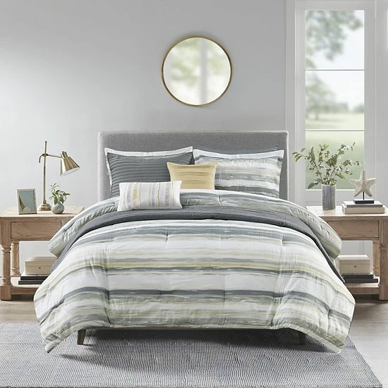 Bring that wonderful ocean aesthetic to your bedroom with the rich colors of this comforter and coverlet set from Madison Park.