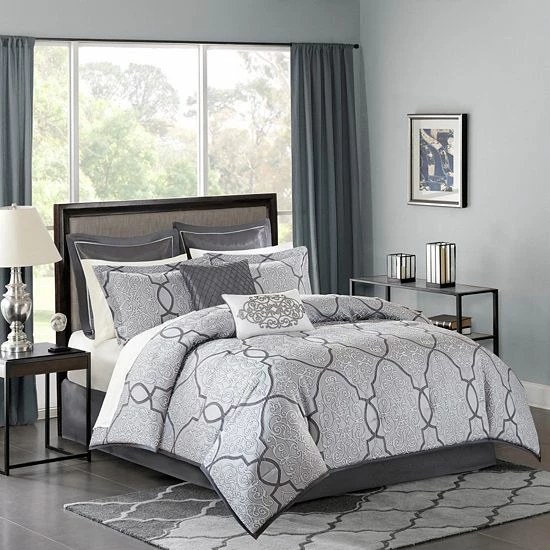 - Luxury, traditional style 12-piece jacquard comforter set with one sheet set included