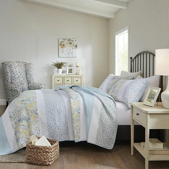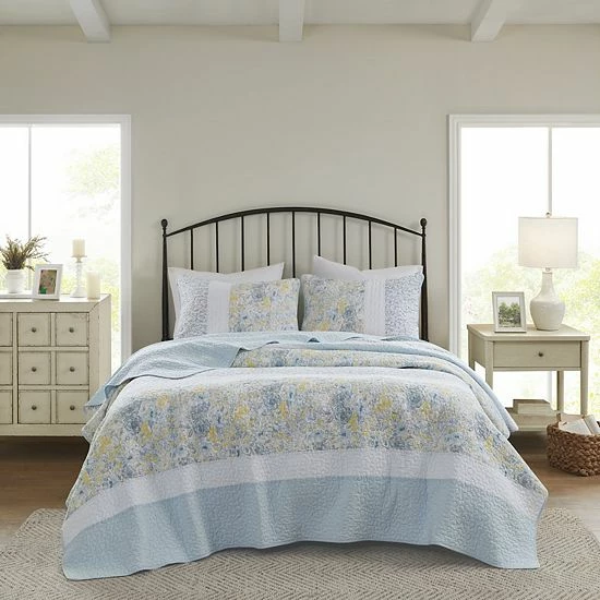 - Style your bedroom with the soft and cozy cottage charm of the Madison Park Ava Reversible Cotton Coverlet Set