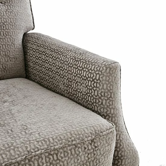 - Upholstered in a mushroom colored fabric that creates a warm and welcoming look