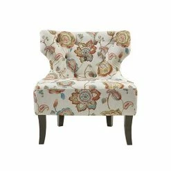This Madison Park accent chair features a low back and an attached cushion upholstered in a floral fabric for a chic contemporary look.