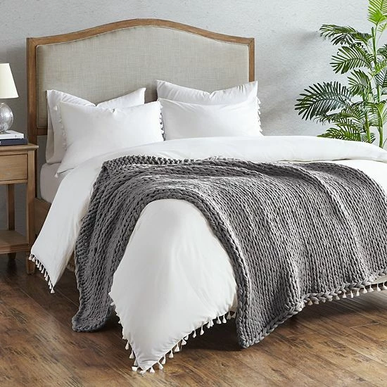 Get warm and cozy with the Madison Park chunky double knit handmade throw.
