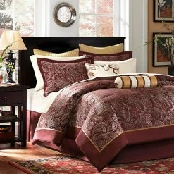 If classic is your style, the Madison Park Churchill 12 piece complete bed set is perfect for you. The jacquard weave is inspired from an updated paisley motif for a touch of sheen to your bedding.ย