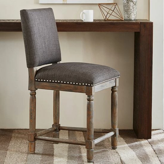 A distressed finish gives this Madison Park Cirque counter stool added rustic style that’s sure to upgrade your home’s decor.