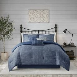 The Madison Park Clayton 7 Piece Printed Seersucker Comforter Set offers a chic modern update to your bedroom.