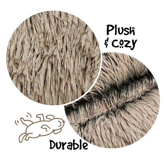 - Ideal for pets to curl up or sprawl, the raised rim around provides warmth with a sense of security. It helps them to calm down faster, ease anxiety, and sleep well. High-quality synthetic plush fur, comfortable and breathable. Exceptional support for head and neck, offers relief for dogs and cats with joint pain or arthritis. Made of non-toxic materials.