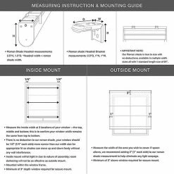 - Inside mount: please choose 0.5″ narrower than your actual window width for full coverage and minimal wall interference; minimum of 3″ depth window required