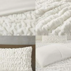 Add glamorous style and comfort to your bedroom with the Madison Park Dakota Down Alt Ruched Faux Fur Comforter Set.