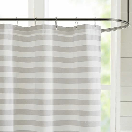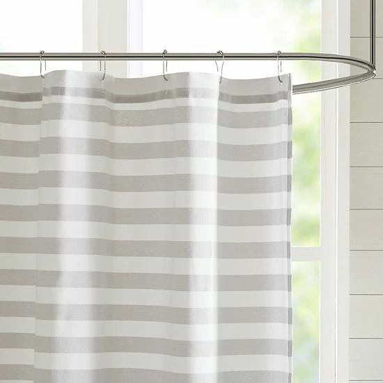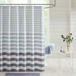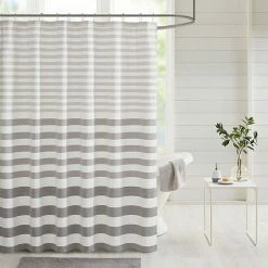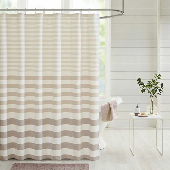 Add a pop of color to your shower with this Madison Park Donna Stripe ombre shower curtain.