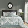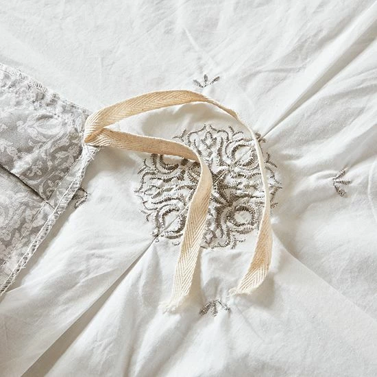 Style your bedroom with the shabby chic allure of the Madison Park Edna 4 Piece Embroidered Cotton Reversible Duvet Cover Set.