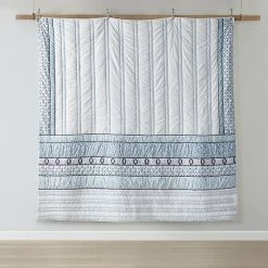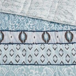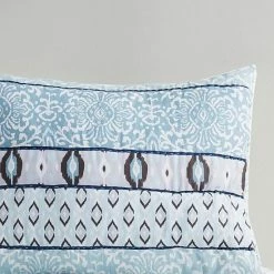 - Panel print on top of coverlet and reverse to all over geometric pattern