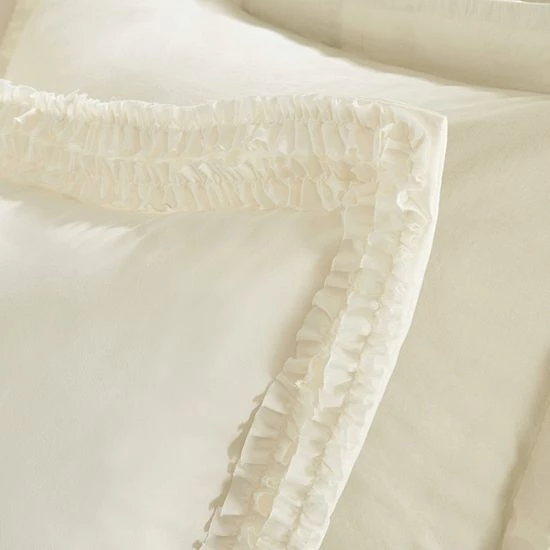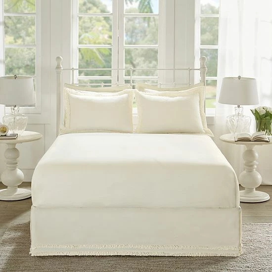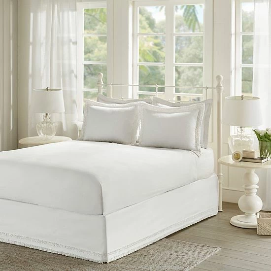 Add a dab of drama to your bedding with this Madison Park Essentials ruffled bedskirt and sham set.