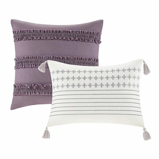 - Solid bedskirt and two decorative pillows provide the perfect finishing touches