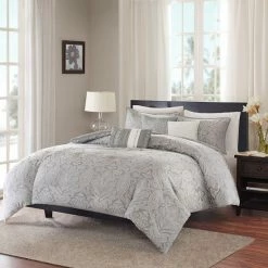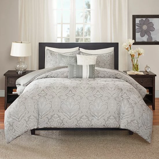 Create a chic bedroom with this Madison Park Finley bed set. In gray.