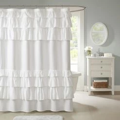 Featuring overscaled ruffles, this Madison Park Hope Shower Curtain will add a chic new look to your bathroom.