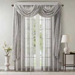 Add sheer style to your space with this Madison Park Iris diamond sheer window scarf.