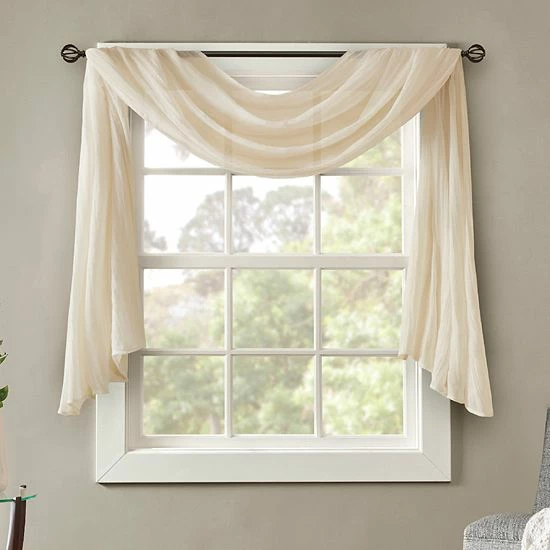 Bring a beautiful new look to your window with this Madison Park Kaylee solid crushed scarf valance.