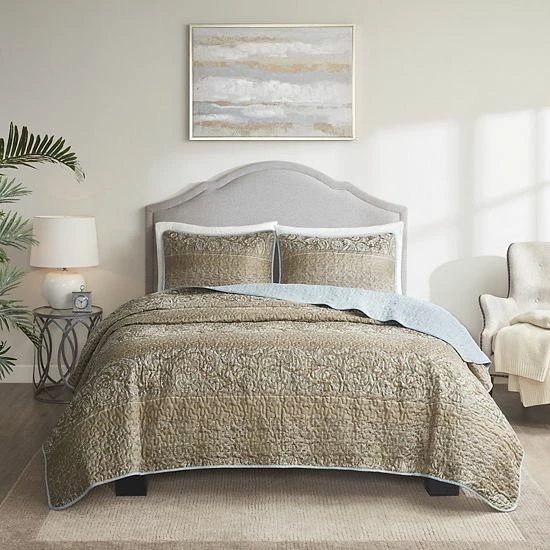 - The Madison Park Laura 3 Piece Reversible Jacquard Coverlet Set offers a refined update to your bedroom.