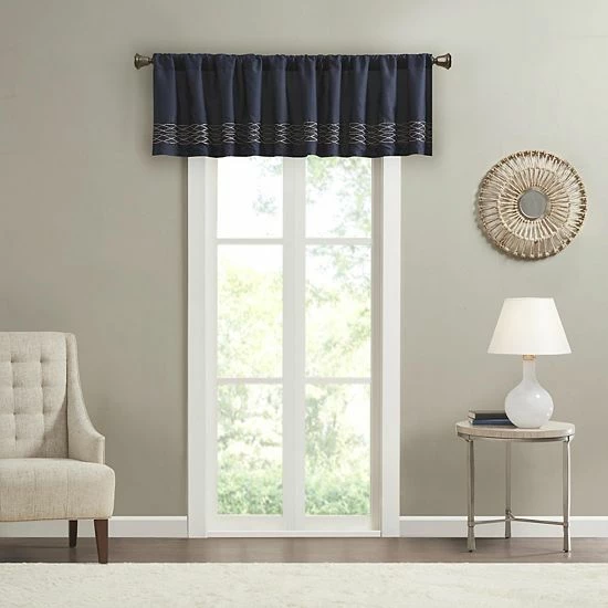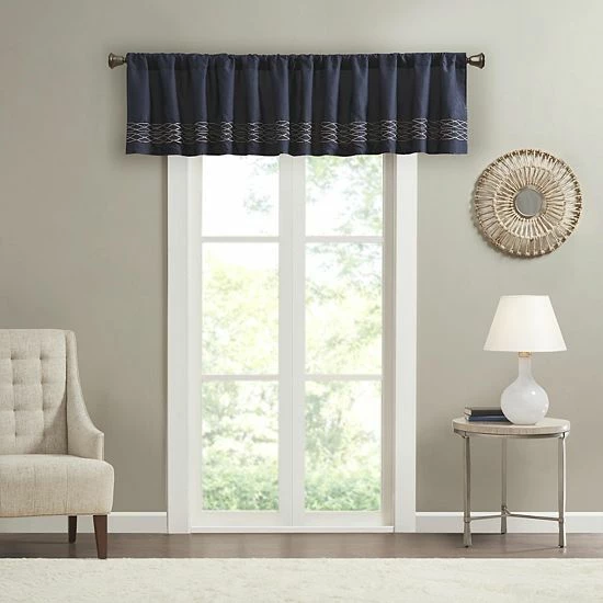 Easily elevate the look of your existing bedroom space with this stylish Madison Park Logan Embroidered Window Valance.