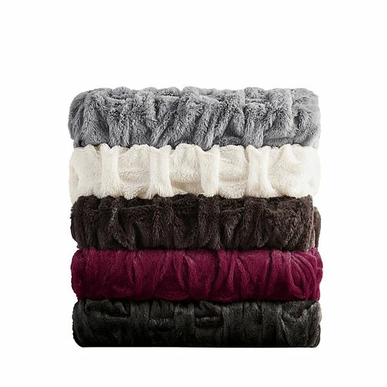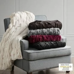 The Luxury Ruched Faux Fur Throw features the softness of faux fur and reverses to an ultra soft solid faux mink. The simple hand ruched pattern is the perfect sophisticated update.