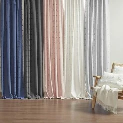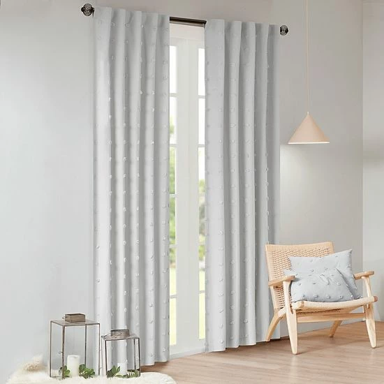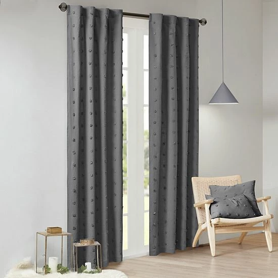 Add fun detail to any space with this Madison Park Maize pom-pom curtain.