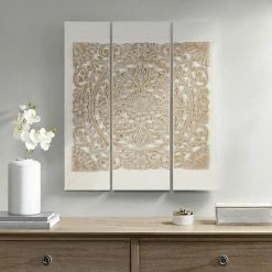 Bring eye-catching style to your living room with this Madison Park Mandala 3D Embellished Canvas Wall Art 3-piece Set.