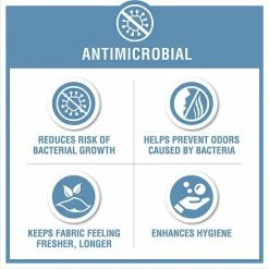 - Antimicrobial treatment for health and wellness – helps reduce the growth of odor causing bacteria and keeps fabric lasting longer