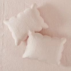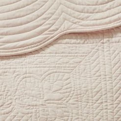 - Intricate patterned stitching in scalloped edge