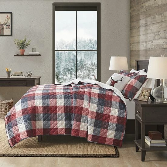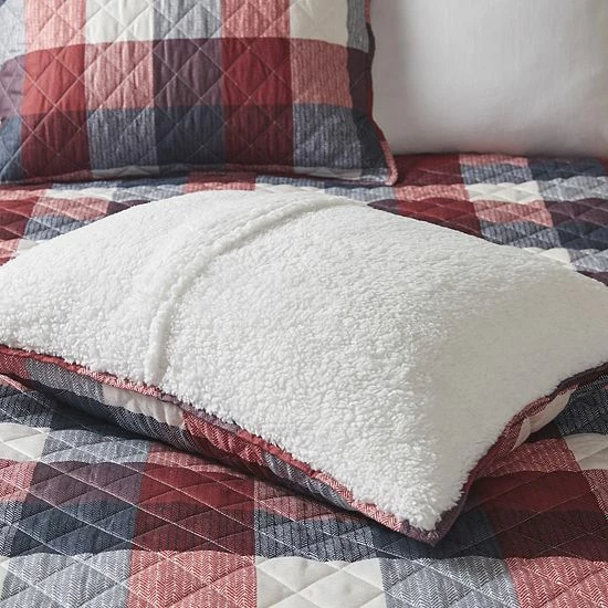Redefine the look and feel of your bed with this stylish Madison Park Meadow Printed Herringbone to Sherpa Reversible Coverlet Set.