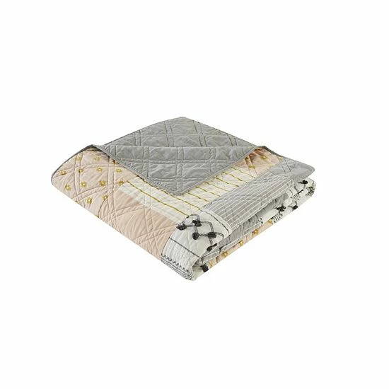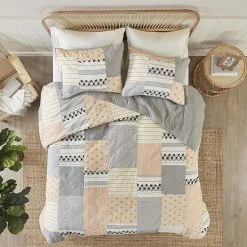 - Country cottage style pieced cotton coverlet set