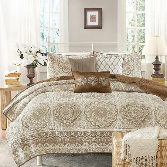 This colorful Madison Park Moraga quilt set delivers eye-catching style to your bedroom.