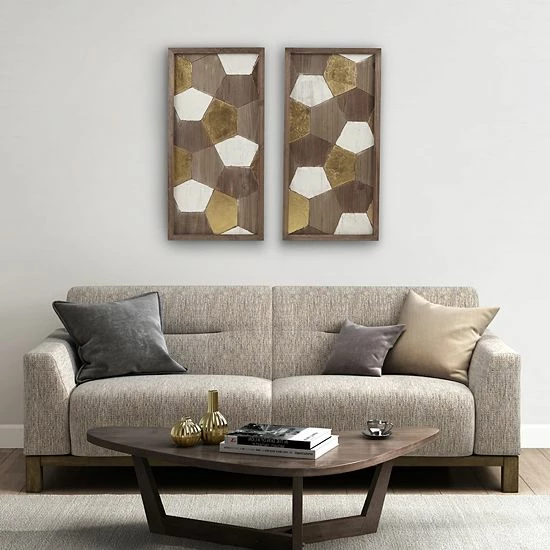 Complete your living room decor with this stylish Madison Park Motley Geometric Panel Wall Decor 2-piece Set.