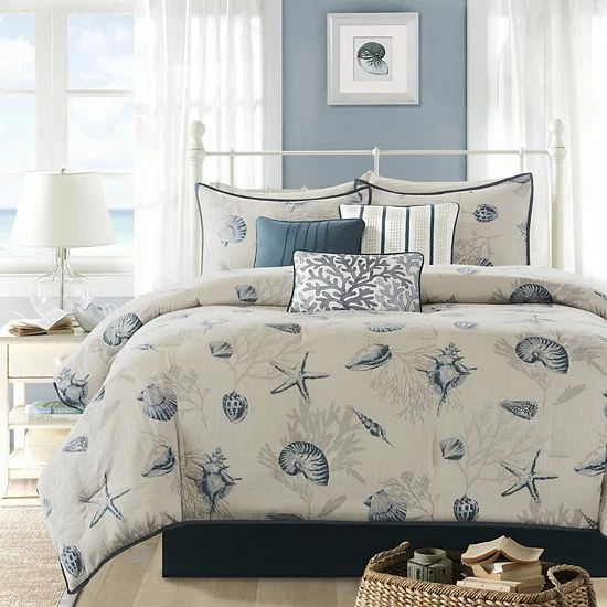 Feel the coastal vibe in your bedroom with this Madison Park Nantucket 7-piece comforter set.