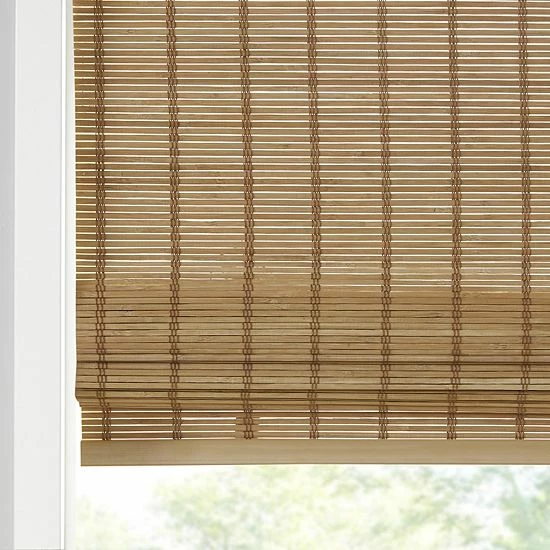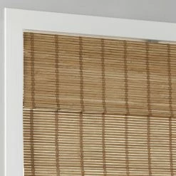 - Bamboo overlapping slats provide light filtering and enhanced added privacy