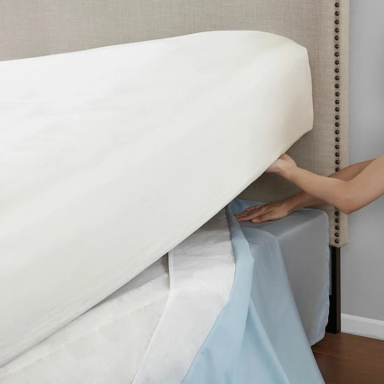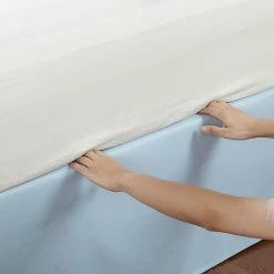 - Simply tuck and fold the bedskirt along the edge of the box spring to find the proper fit for your bed