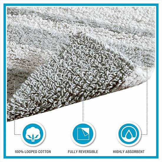 Set a trendy tone in your master bath with this Madison Park Spa bath rug.