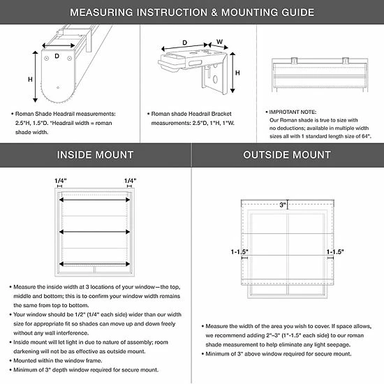 - Inside mount: please choose 0.5โ narrower than your actual window width for full coverage and minimal wall interference; minimum of 3″ depth window required