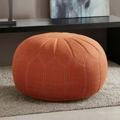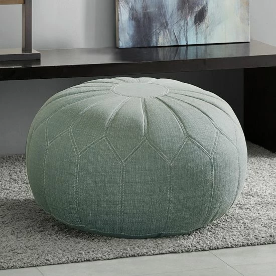 With its stitch-patterned upholstery, this Madison Park Taylor pouf ottoman offers standout, chic style.