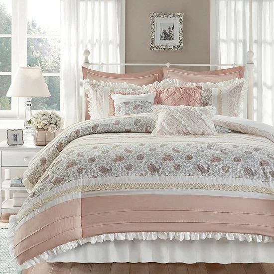 - Cottage and shabby chic 9 piece comforter set in cotton fabrication