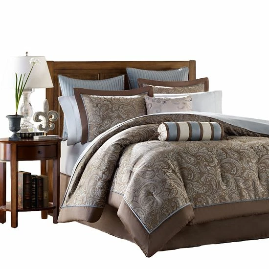 Pretty, pretty paisley. This Madison Park Whitman bed set is just your style. Striped accents and a jacquard paisley pattern lend instant charm to your home.